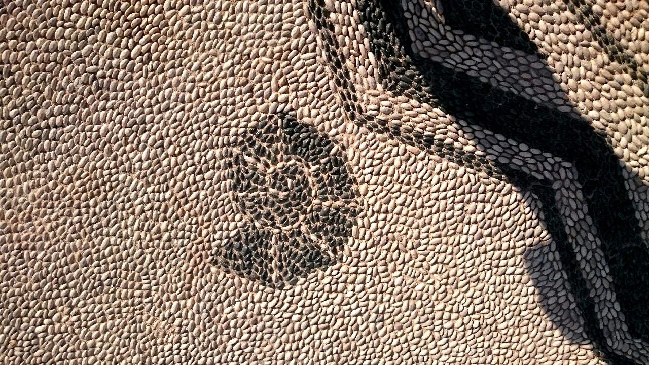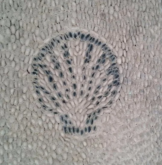 Shell mosaic made from pebbles in the floor of the spar