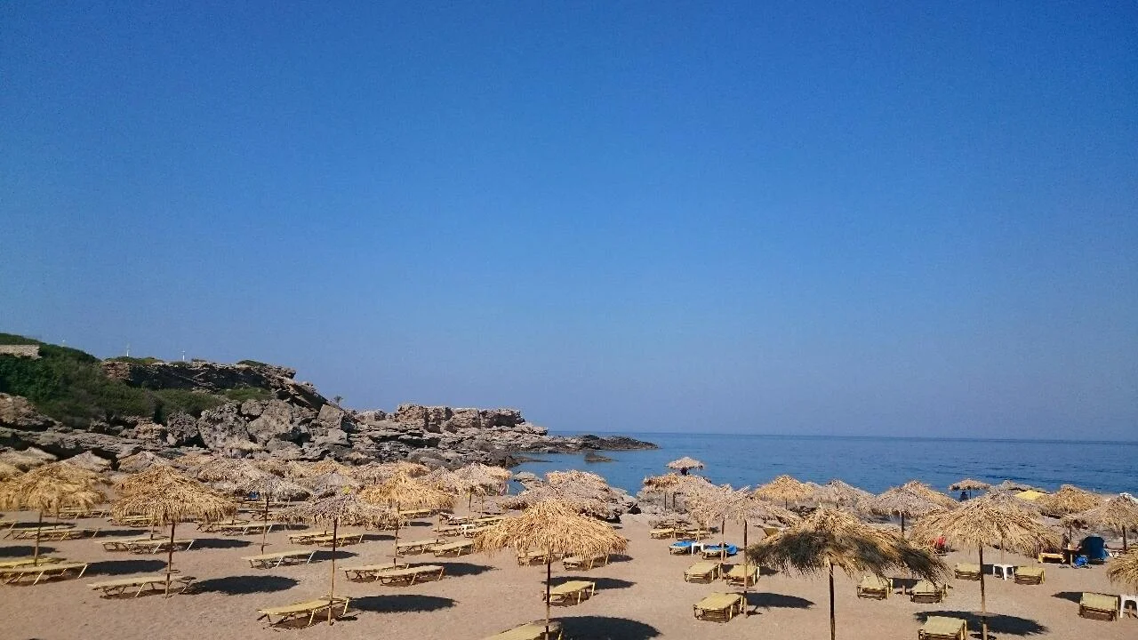 I was recently swimming in this gorgeous Grecian sea, overlooked by the beautiful monument of The Kalithea Springs. The beach here is amazing, formed from volcanic stone making inlets and rock pools to explore and laze in.