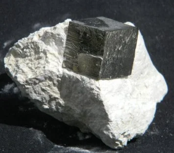 The pyrite cube provided was gun-metal grey, metallic with hard edges.